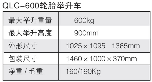 【產(chǎn)品名稱】:QLC-600輪胎舉升車